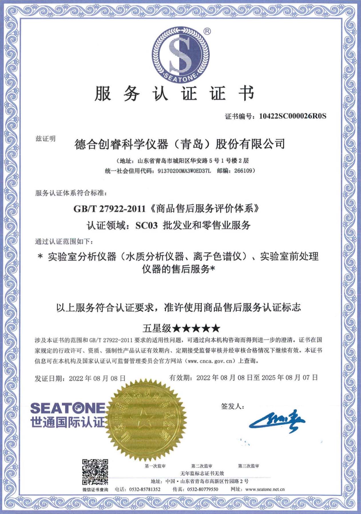 8月10日,德合創(chuàng)睿憑借完善的服務(wù)體系、優(yōu)秀的服務(wù)質(zhì)量,一次性高分通過GB/T 27922-2011《商品售后服務(wù)評(píng)價(jià)體系》的認(rèn)證審核,喜獲“五星級(jí)售后服務(wù)”認(rèn)證證書。認(rèn)證專家對(duì)德合創(chuàng)睿的服務(wù)體系建設(shè)給予了高度評(píng)價(jià)和贊賞!